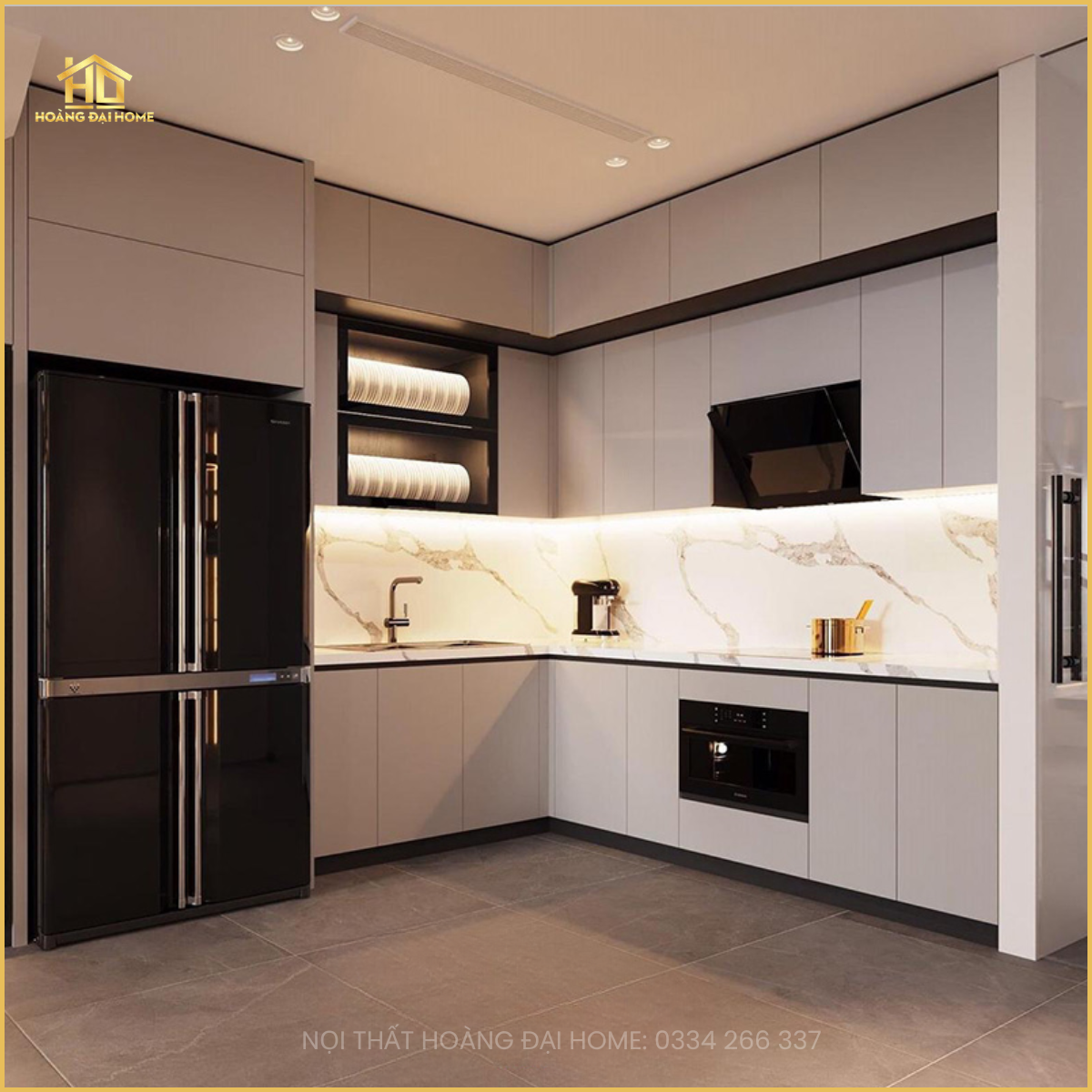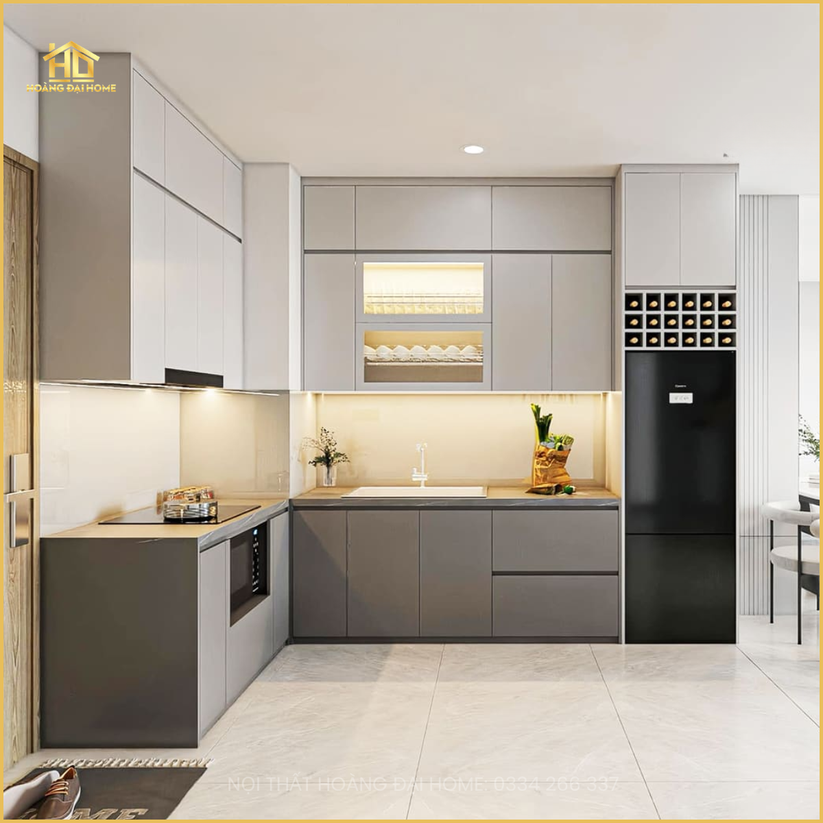 Tủ bếp chữ L Thiết Kế Theo Yêu